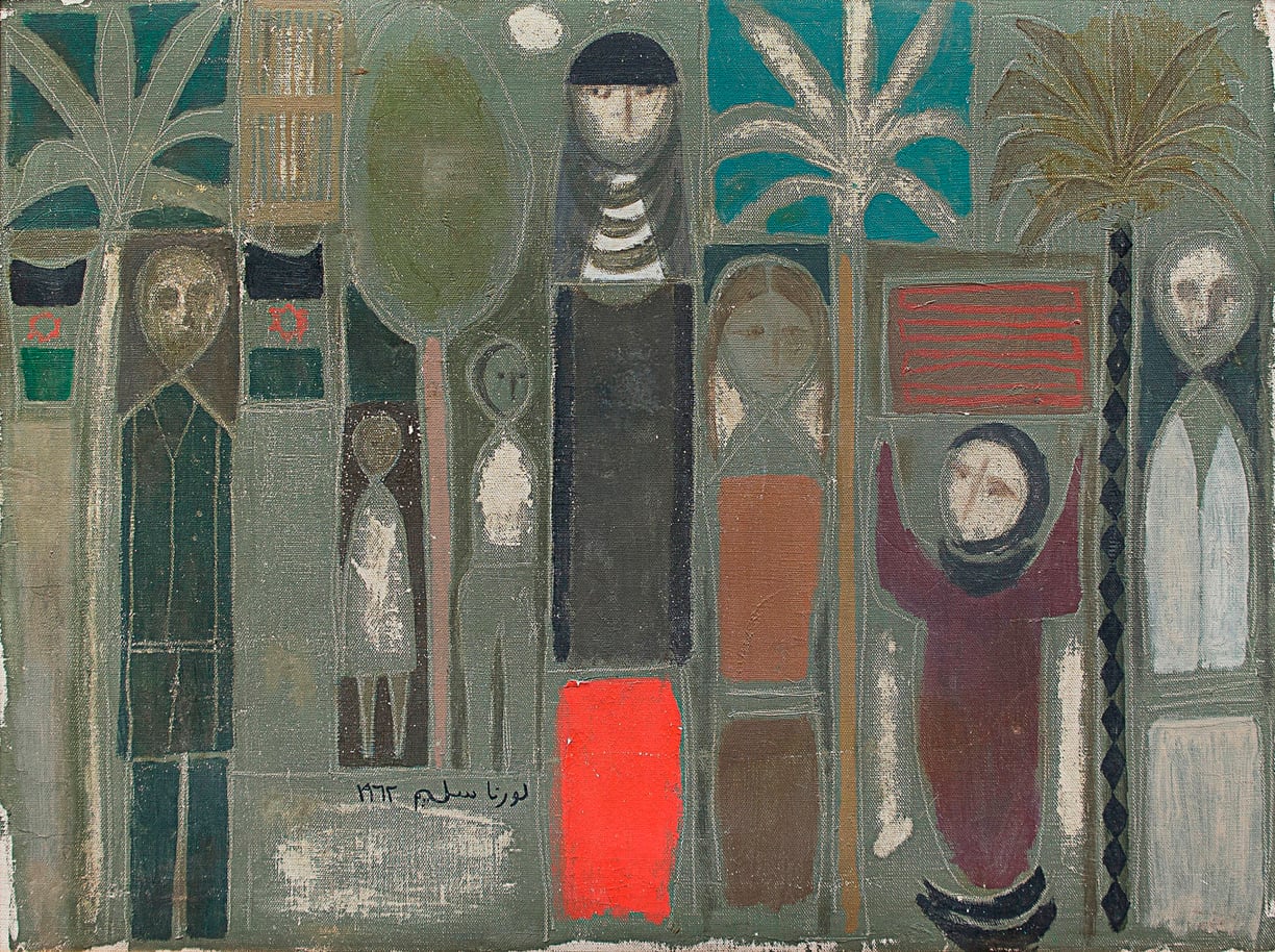 The Baghdad Modern Art Group was formed after a dynamic period of accelerated change and growth in Iraq following the nation’s liberation from British rule in 1932. During the 1930s and ’40s, amid ongoing political turbulence, artists began a crucial negotiation between a nascent postcolonial national consciousness and a burgeoning modernism. Iraqi artists were challenged on two intersecting fronts: on the one hand, with the need to construct points of continuity with Iraqi visual history, and on the other, with the call to create new forms of representation capable of expressing a modern existence.