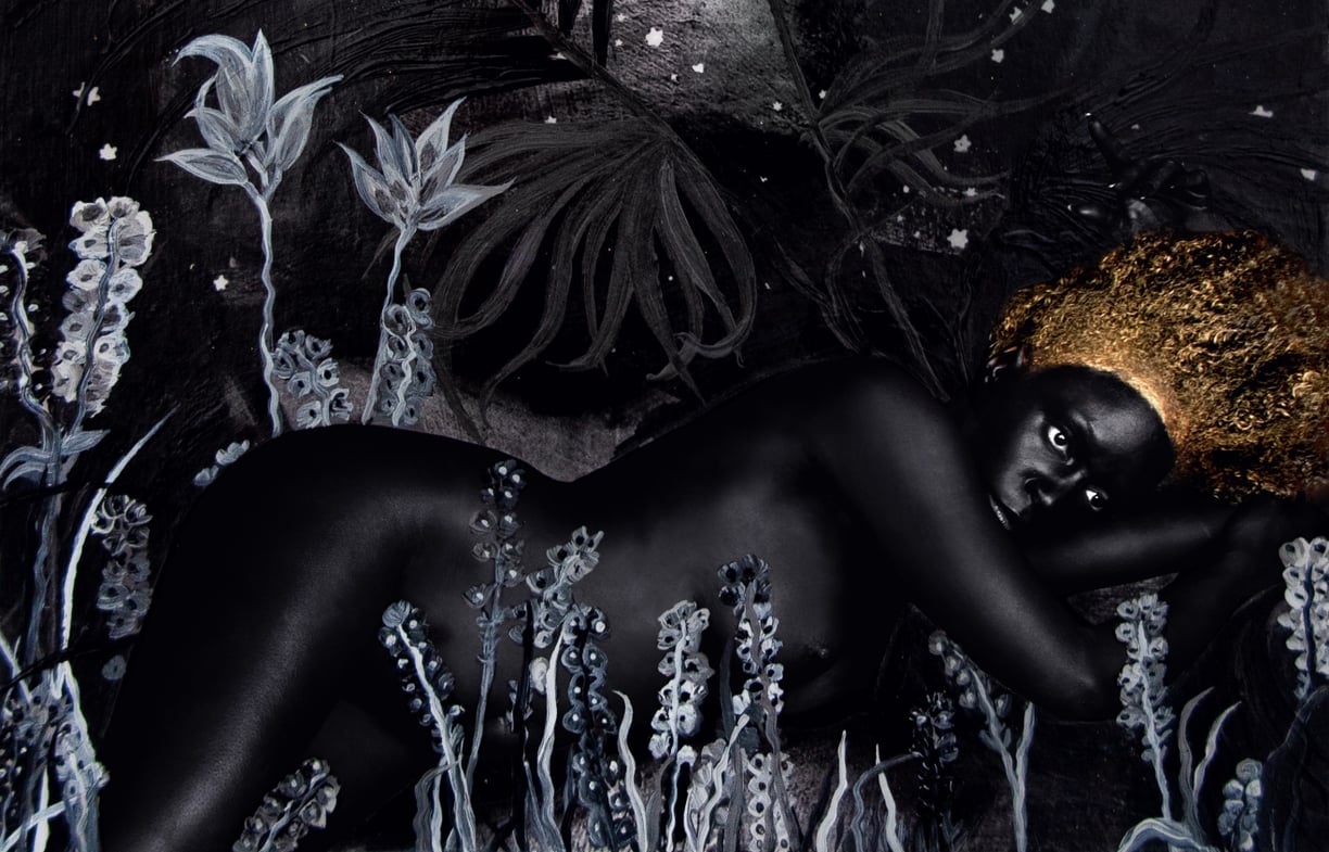 Human figures appear in multiple ways, often layered with flowers or foliage. Bodies are revealed through compositions of fabric, paint, and textiles, layered on top of one another to produce distinct individuals and the environments they inhabit. More confrontational photographs reveal a metaphorical layering, in which the photographers and their subjects negotiate presentations of self, of community, and even of country.
